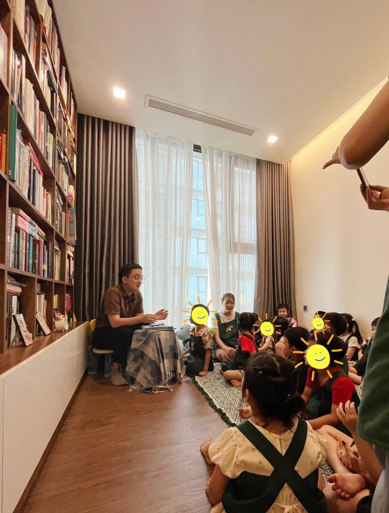 Chủ đề của buổi trải nghiệm là các bạn ngồi nghe bố Kun giới thiệu về công việc dịch sách, sau đó ăn bữa nhẹ rồi xuống khu vui chơi. Rõ ràng chú bố đã chuẩn bị kỹ bài nói rồi, thế nào mà khi ngồi trước các bạn thì chú lại bị đứng hình mất mấy giây, đầu óc trống trơn 😶 may mà rồi cũng nói được như kịch bản he he.